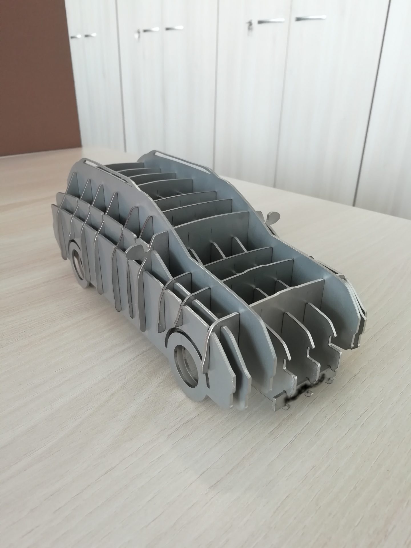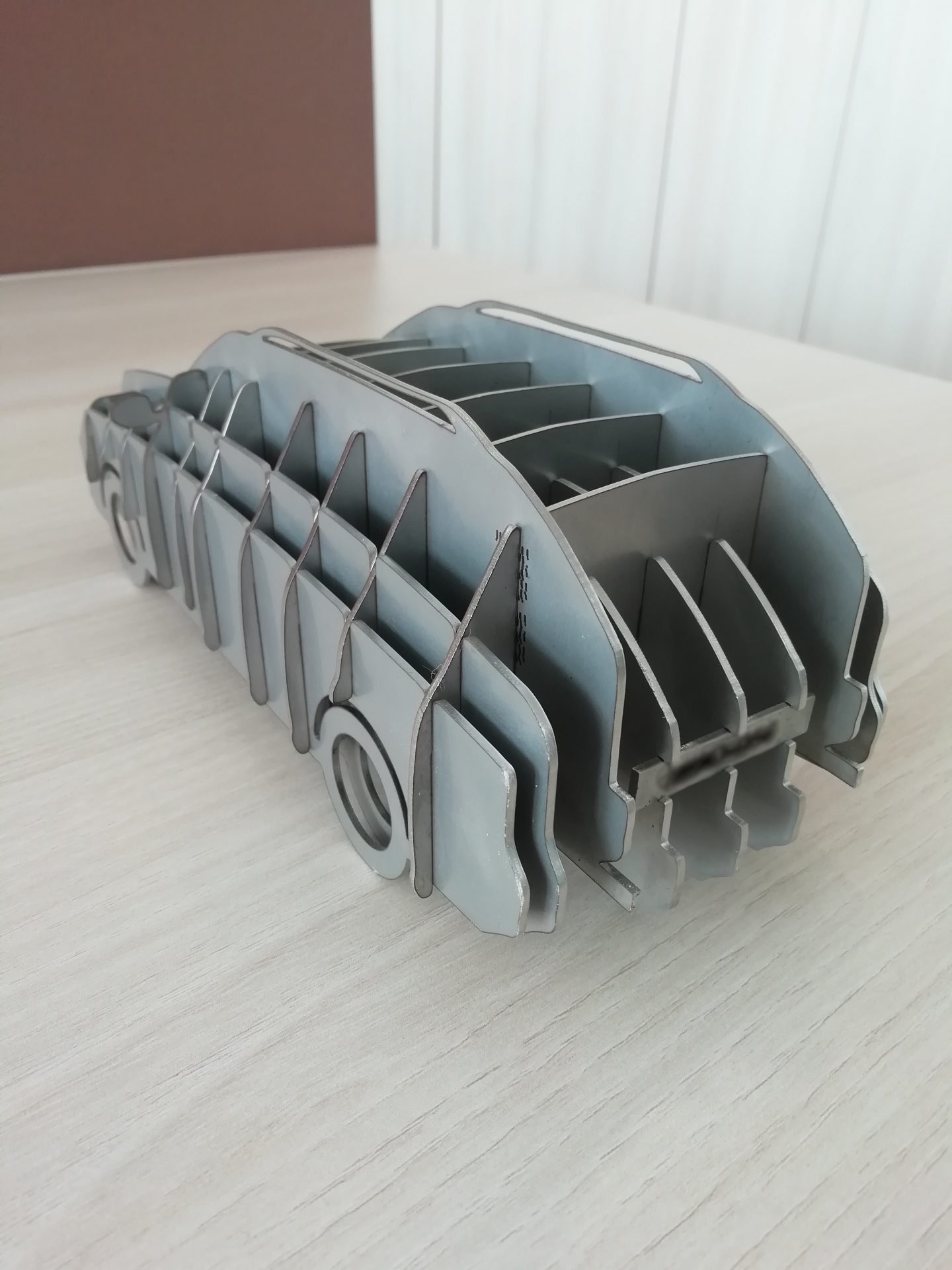 Ez egy szobor, mely lemezekből készült. Egy testet felszeletelünk majd egymáshoz közel állítva a lemezeket, reprodukáljuk a körvonalait. Ezzel a módszerrel érdekes szobrokat lehet létrehozni, Minnesotában és Prágában is készítettek már szobrokat hasonló módon. Mi a lemezek egymáshoz rögzítését nem hegesztéssel oldottuk meg hanem egymásba illeszkedő lemezeket hoztunk létre.